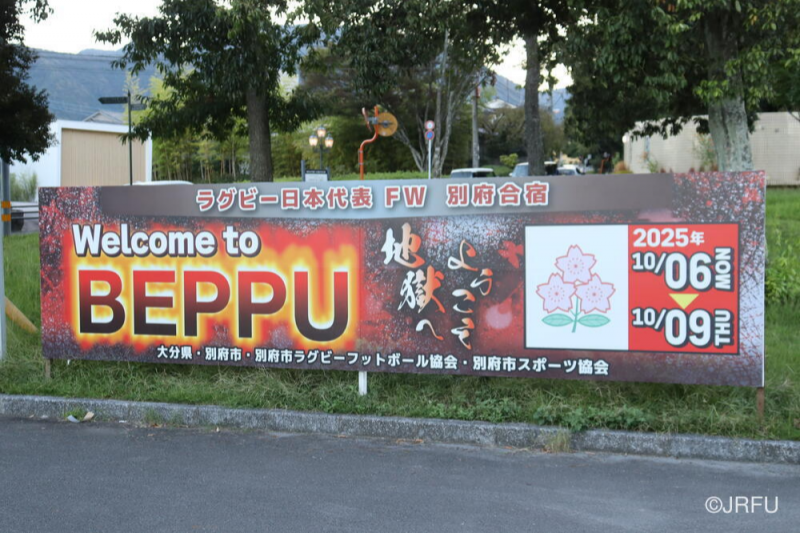 令和7年10月6日~10月9日の期間、ラグビー15人制日本代表のフォワード選手が別府市で合宿を行いました。