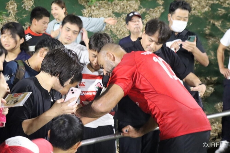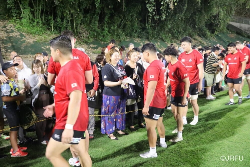 地元ラグビーファンのみならず、県外のラグビーファンも多く訪れ、練習後には、選手とサインや写真撮影をするなど、交流しました。