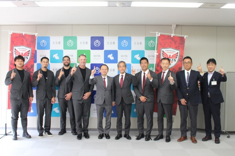 10月30日(木)には、レオン・マクドナルドHC、田村選手、ビリー選手、古川選手などチーム関係者が大分県庁を訪れ、桑田副知事にシーズン開幕前の報告を行いました。