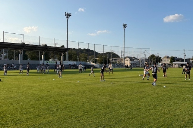 クリニックでは、パス、タックル、ボールゲームの3つのステーションに分かれ、選手らがそれぞれのセッションの内容を決めて指導していただきました。